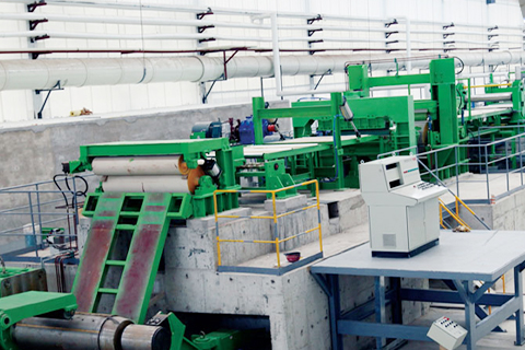 涂彩鋼板生產線年產能25萬噸,可生產規格為0.2~1.2MM*800~1250MM,生產線采用二涂二烘的輥涂工藝復合而成。基板采用本公司生產的無鋅花鍍鋅板或鍍鋁鋅硅板,具有優良的耐蝕性、力學性、外觀裝飾性,應用于建筑、家電等新興領域。